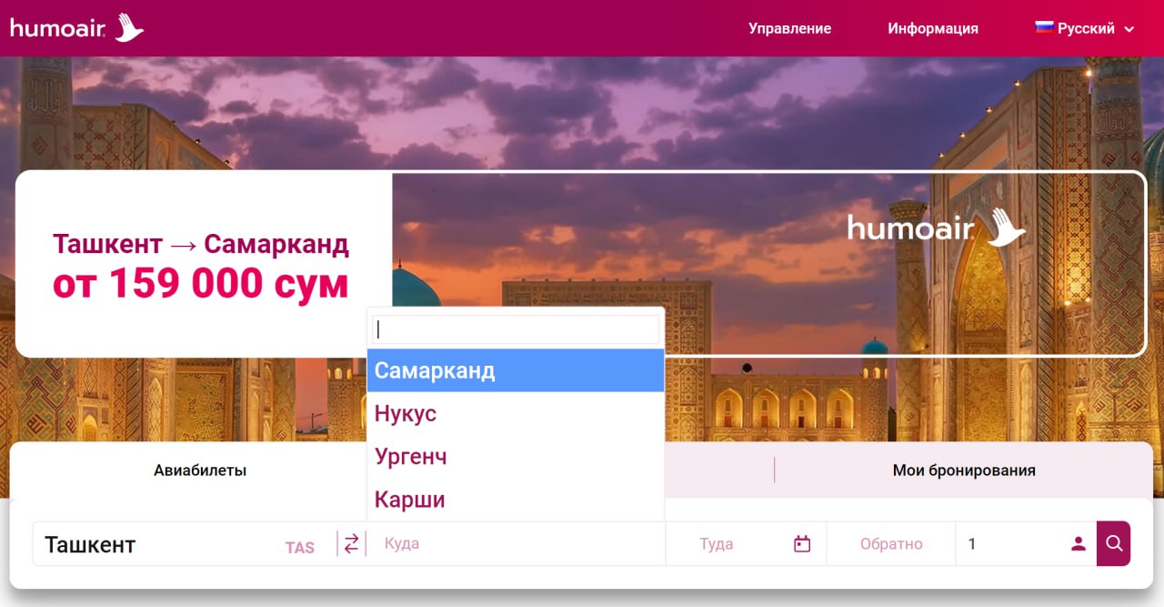 🇺🇿❗️ Обновлённый узбекский лоукостер Humo Air открыл продажу билетов из Ташкента по четырём направлениям: Нукус, Самарканд, Ургенч и Карши.