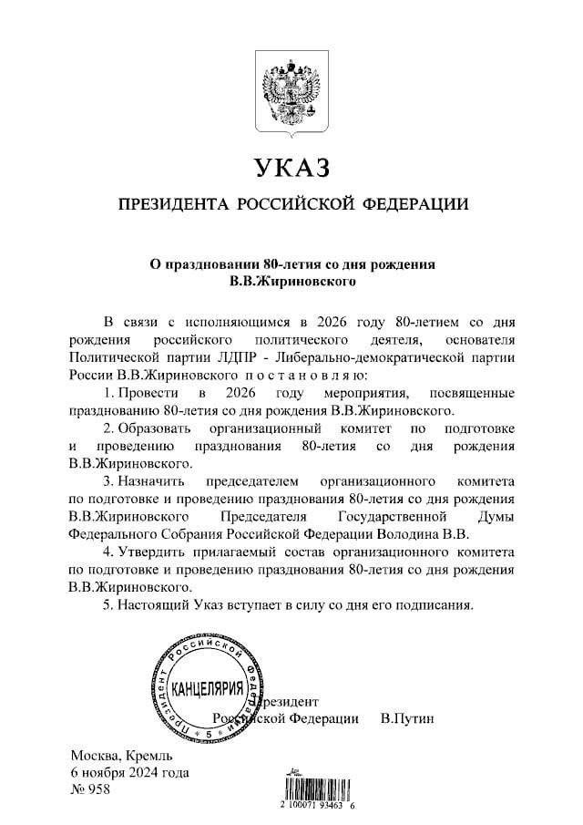 Нельзя не отметить тот уровень усилий, который проявляет к сохранению памяти об основателе ЛДПР Леонид Слуцкий. Действительно, Жириновский стал первым политиком в России, чей юбилей отмечается через Указ Президента. Это подчеркивает значимость его вклада в политику страны и признание его роли в формировании политического ландшафта с первых дней современной России.