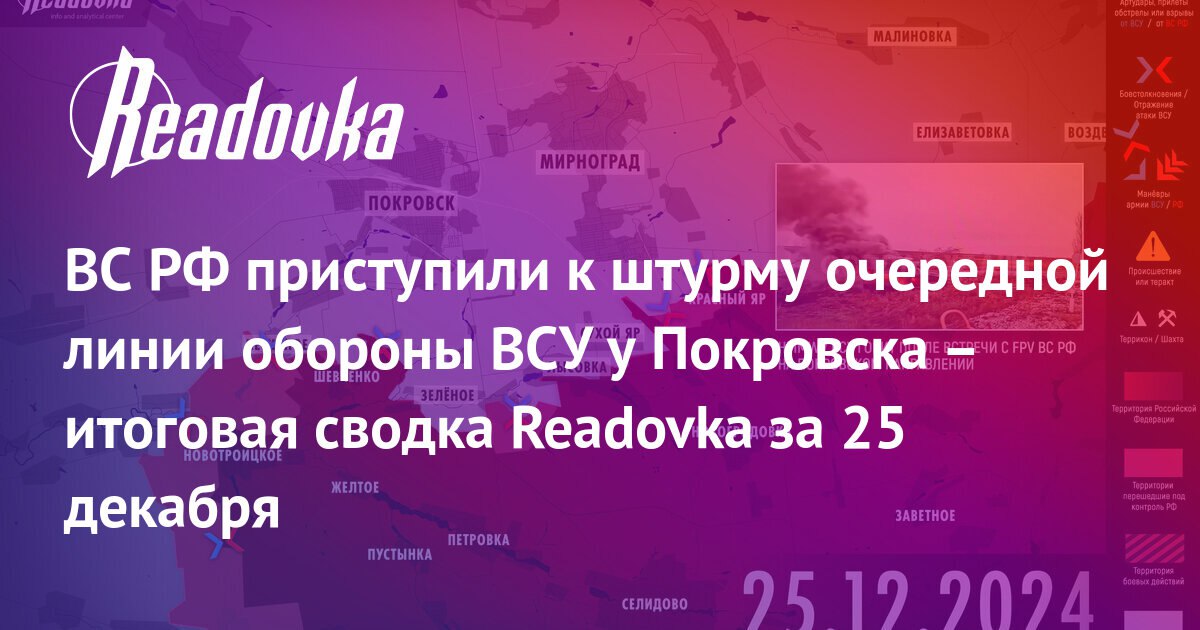 ВС РФ приступили к штурму очередной линии обороны ВСУ у Покровска – итоговая сводка Readovka за 25 декабря