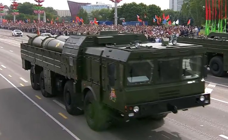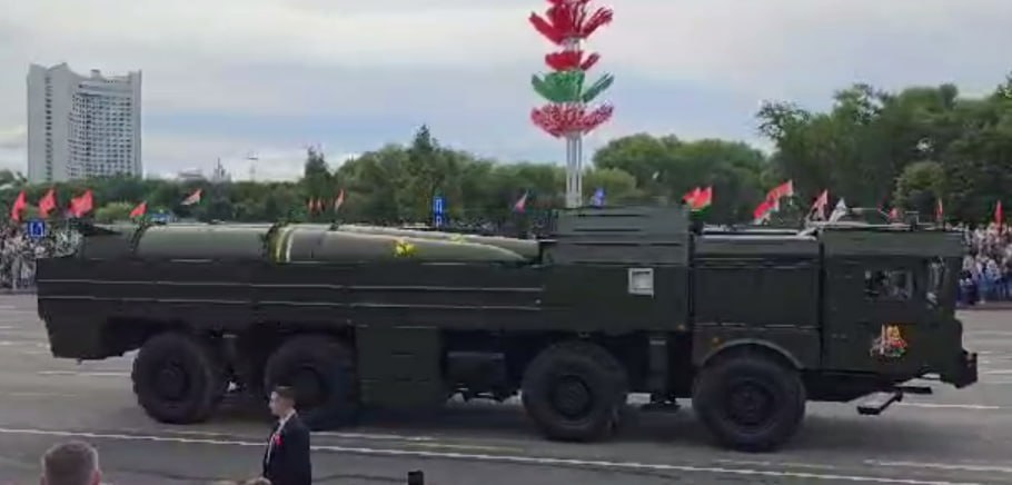 На параде в Республике Беларусь были представлены макеты тактических ядерных ракет ОТРК Искандер.