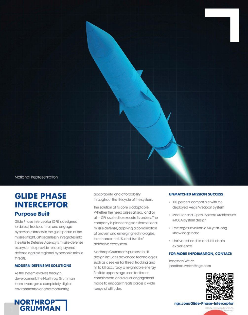 Glide Phase Interceptor (GPI) предназначенной для обнаружения, отслеживания, контроля и поражения гиперзвуковых угроз на этапе полёта "глайдера".