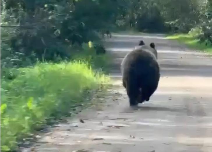 В Иглинском районе грибник на автомобиле направлялся в село Ауструм, где на дороге ему встретился медведь, который пустился в бега сразу как увидел машину. Автор видео решил поехать вслед за убегающим любителем меда. Он преследовал его по проселочной дороге в течении 45 секунд пока, тот не скрылся в лес.