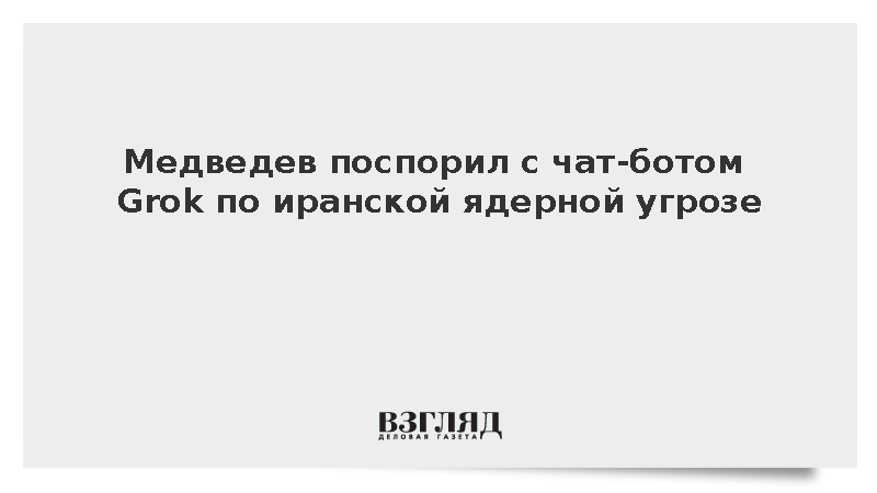 Зампред Совета безопасности России Дмитрий Медведев заявил, что чат-бот Grok некомпетентен в оценке масштабов ядерной угрозы в Иране.