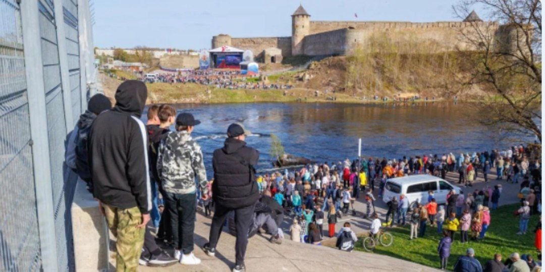 Сотни жителей эстонской Нарвы пришли сегодня к российской границе, чтобы посмотреть традиционный концерт ко Дню Победы в Ивангороде.