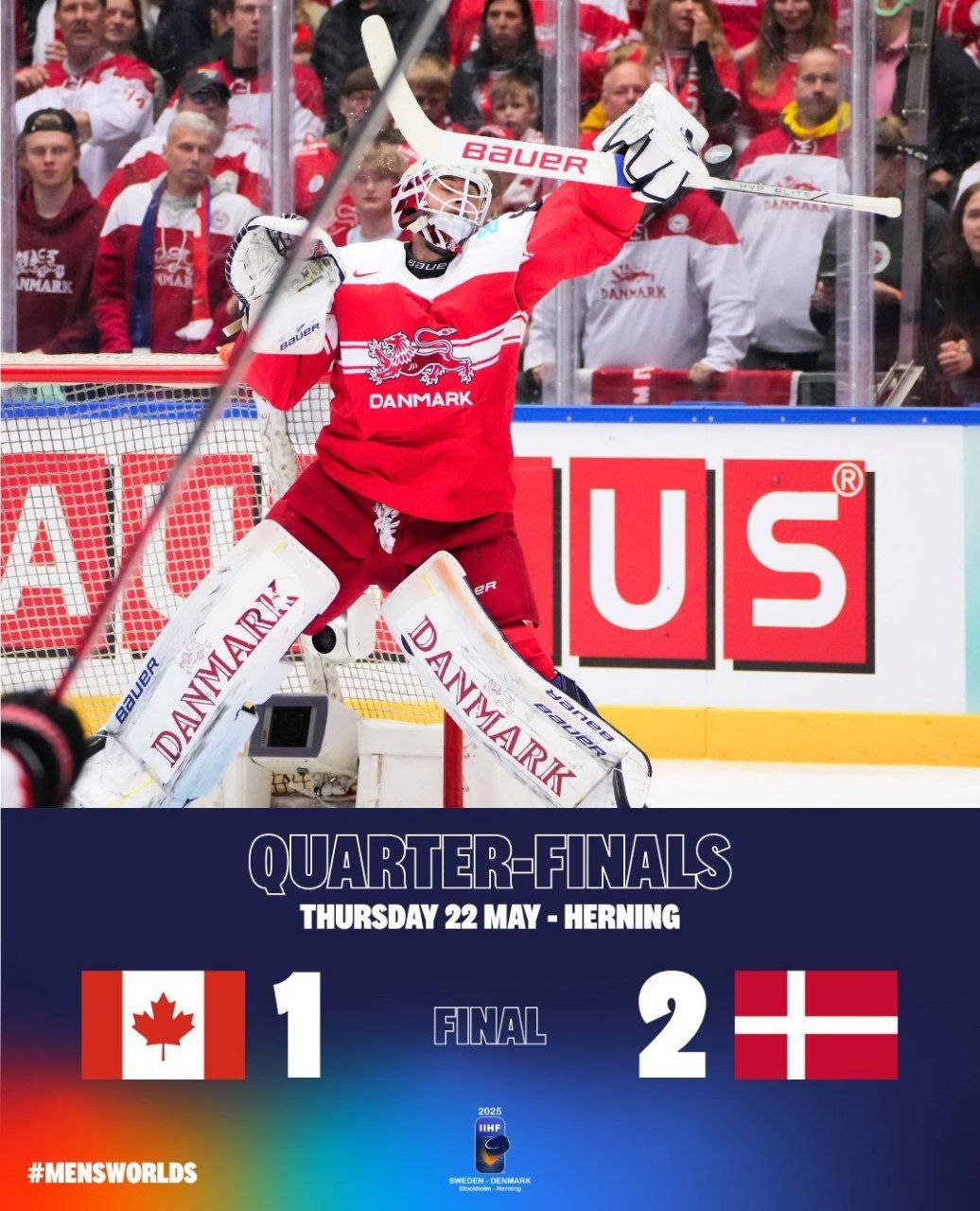 Канадцы, которые были фаворитами, уступили Дании и закончили игру со счётом 1:2.