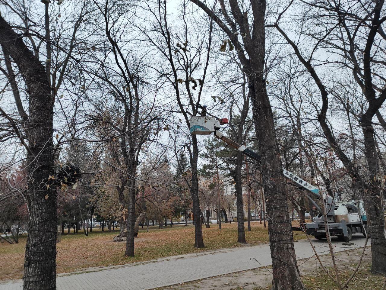 Часть гирлянд уже начали монтировать в Первомайском сквере