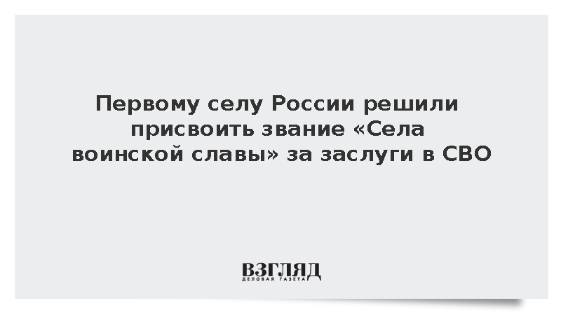 Впервые в России селу присвоят почетное звание «Село воинской доблести» за заслуги в специальной военной операции, написал в Telegram-канале Солодов.
