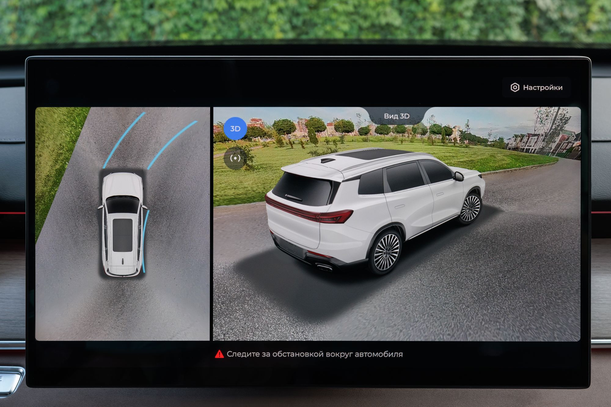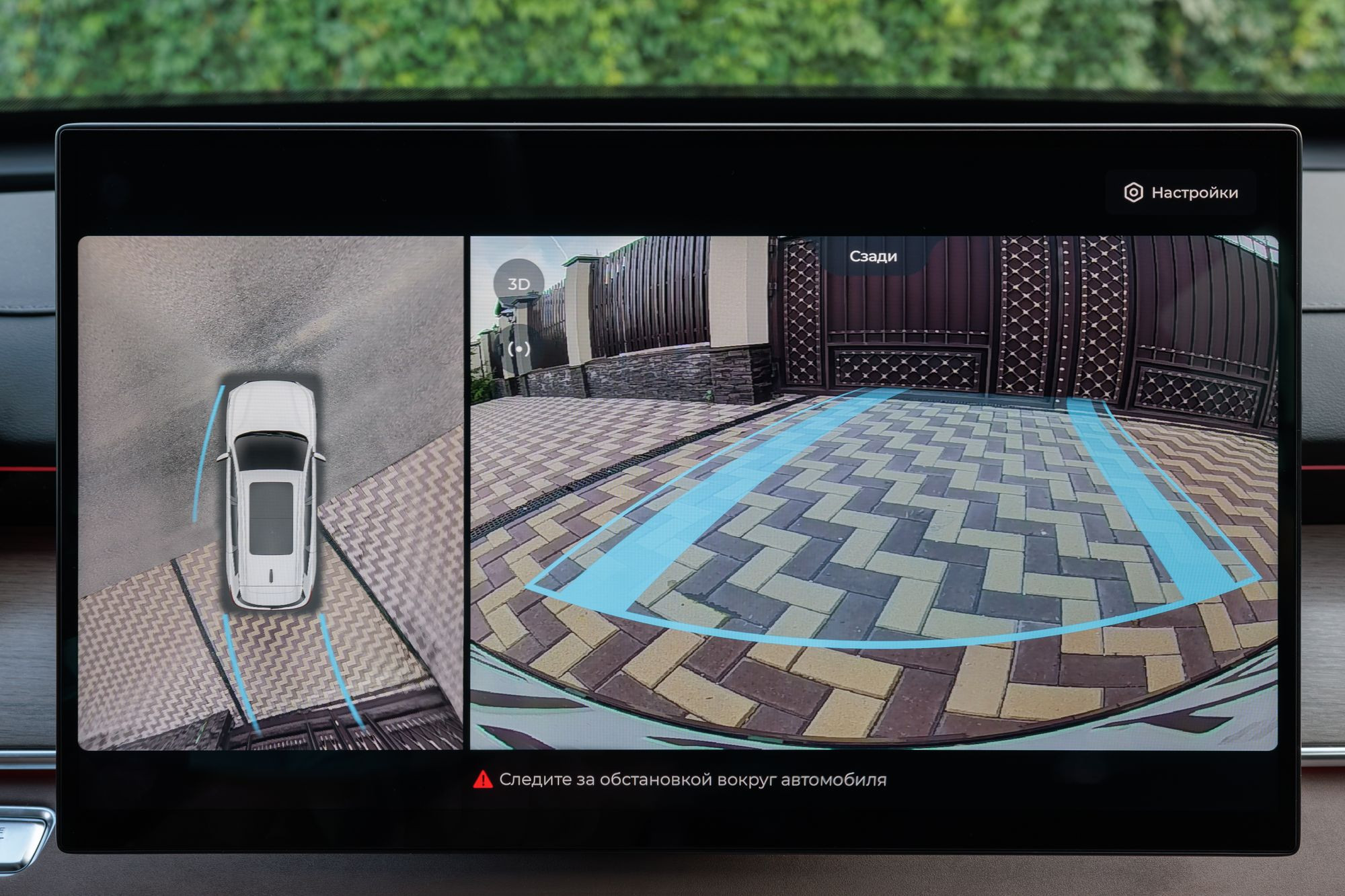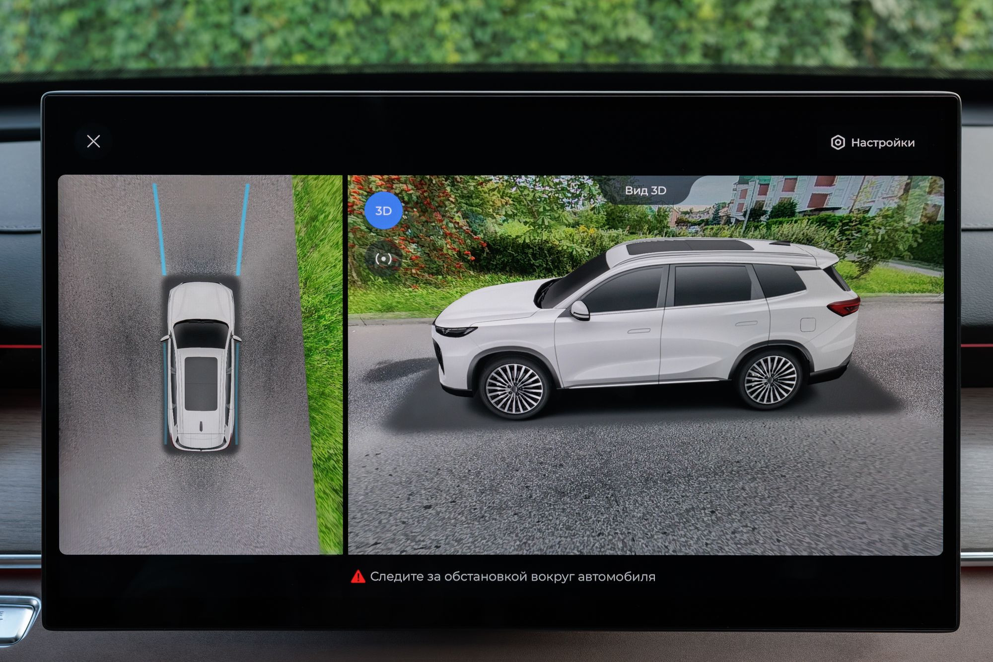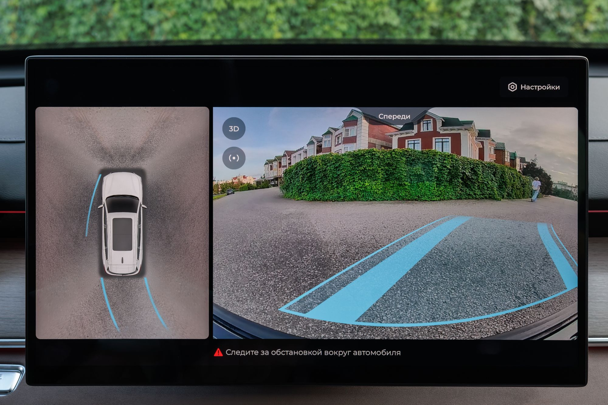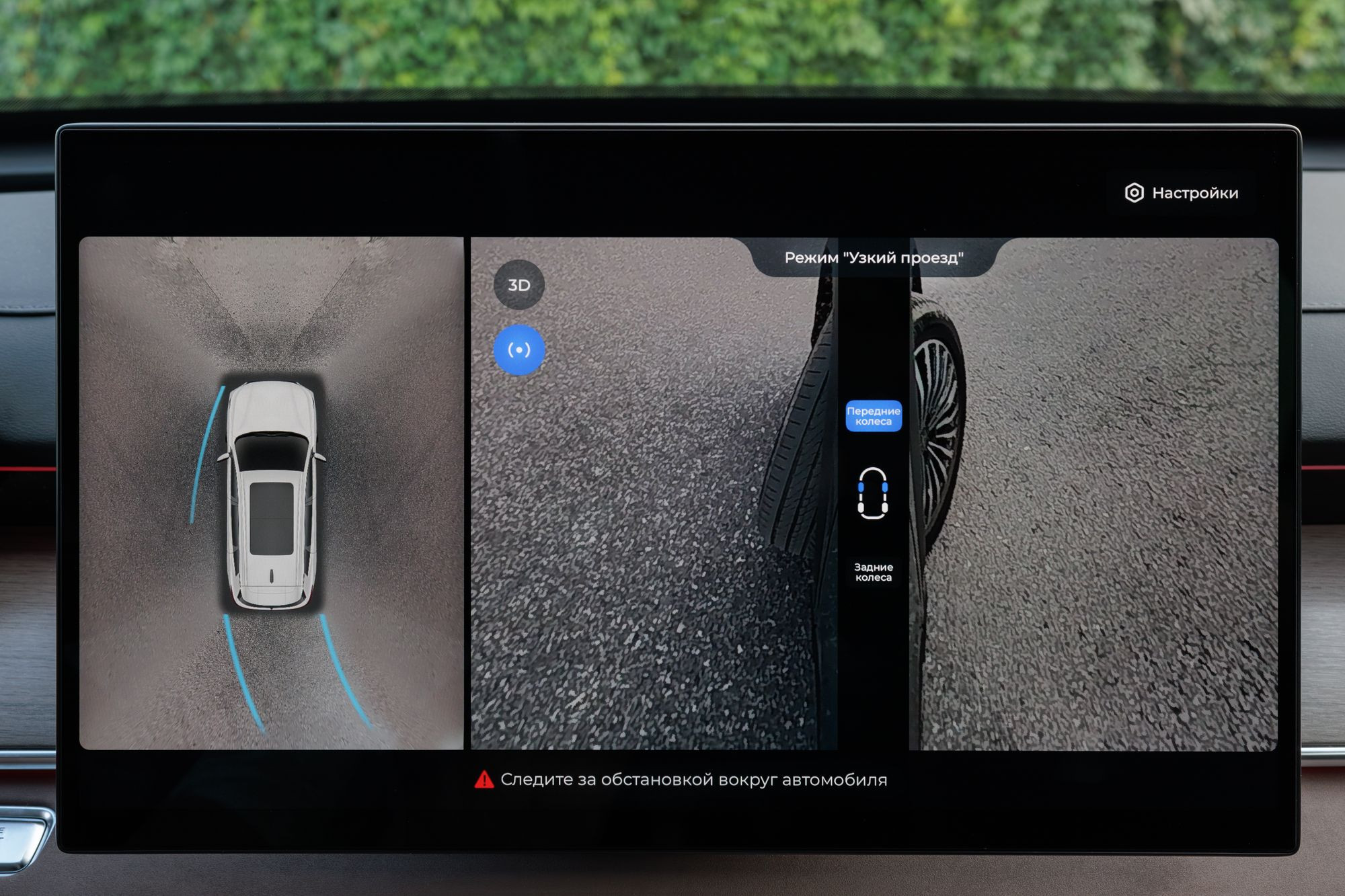 Управление климатом осуществляется через главный тачскрин. Быстрый доступ к иконкам можно получить свайпом экрана снизу или через главное многоуровневое меню. Вообще, с меню стоит подробно ознакомиться заранее, тем более что для того, чтобы увидеть некоторые пункты, нужно прокрутить экран вниз. Например, мне очень мешало окно с круговым обзором, выводящееся на навигационный экран при каждом включении поворотника. Наверняка это можно как-то отключить, но эта возможность закопана куда-то в недра меню. Не меньшее раздражение вызывает и звуковая сигнализация работы некоторых ассистентов. В частности – контроля движения в полосе.