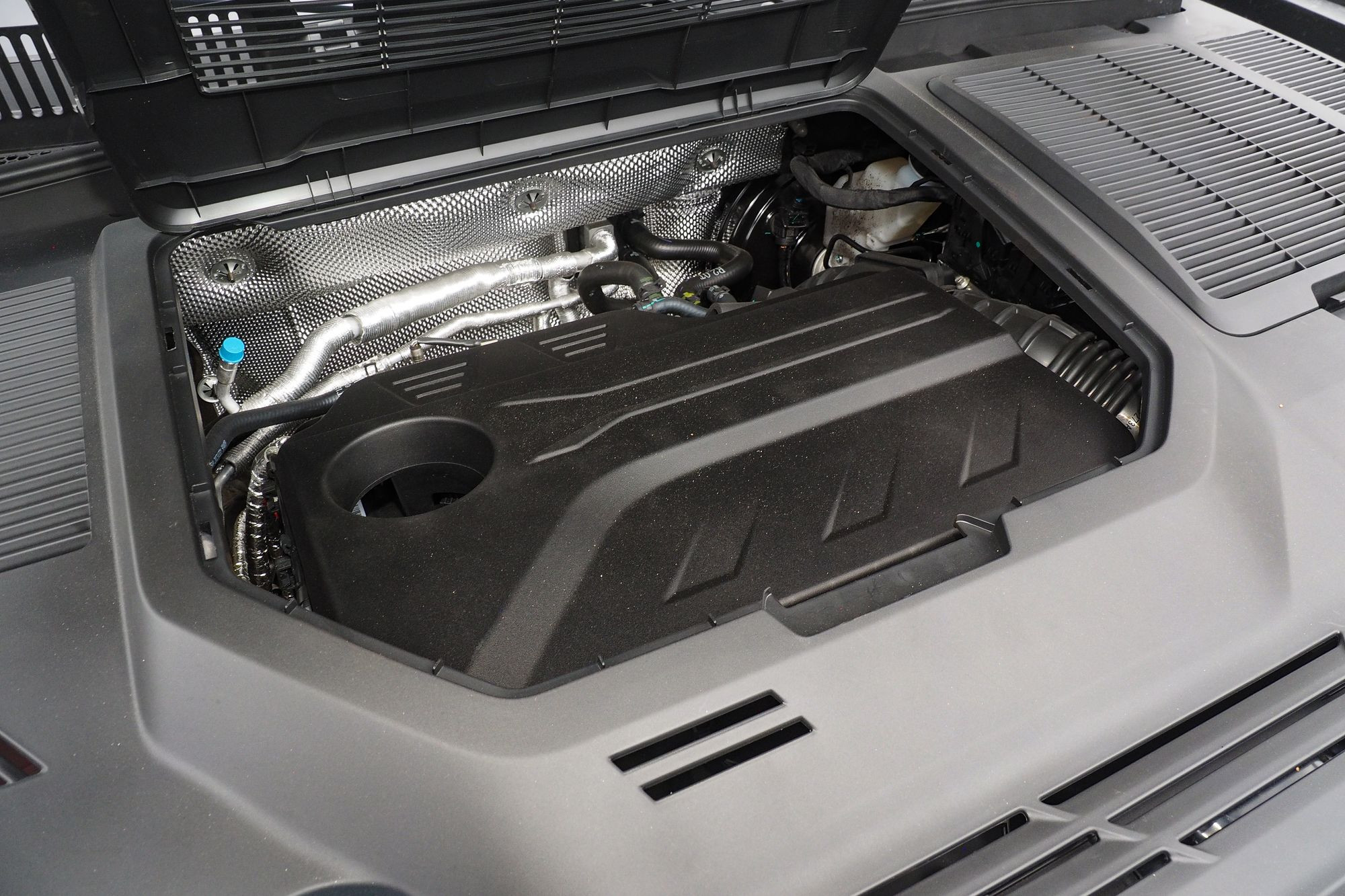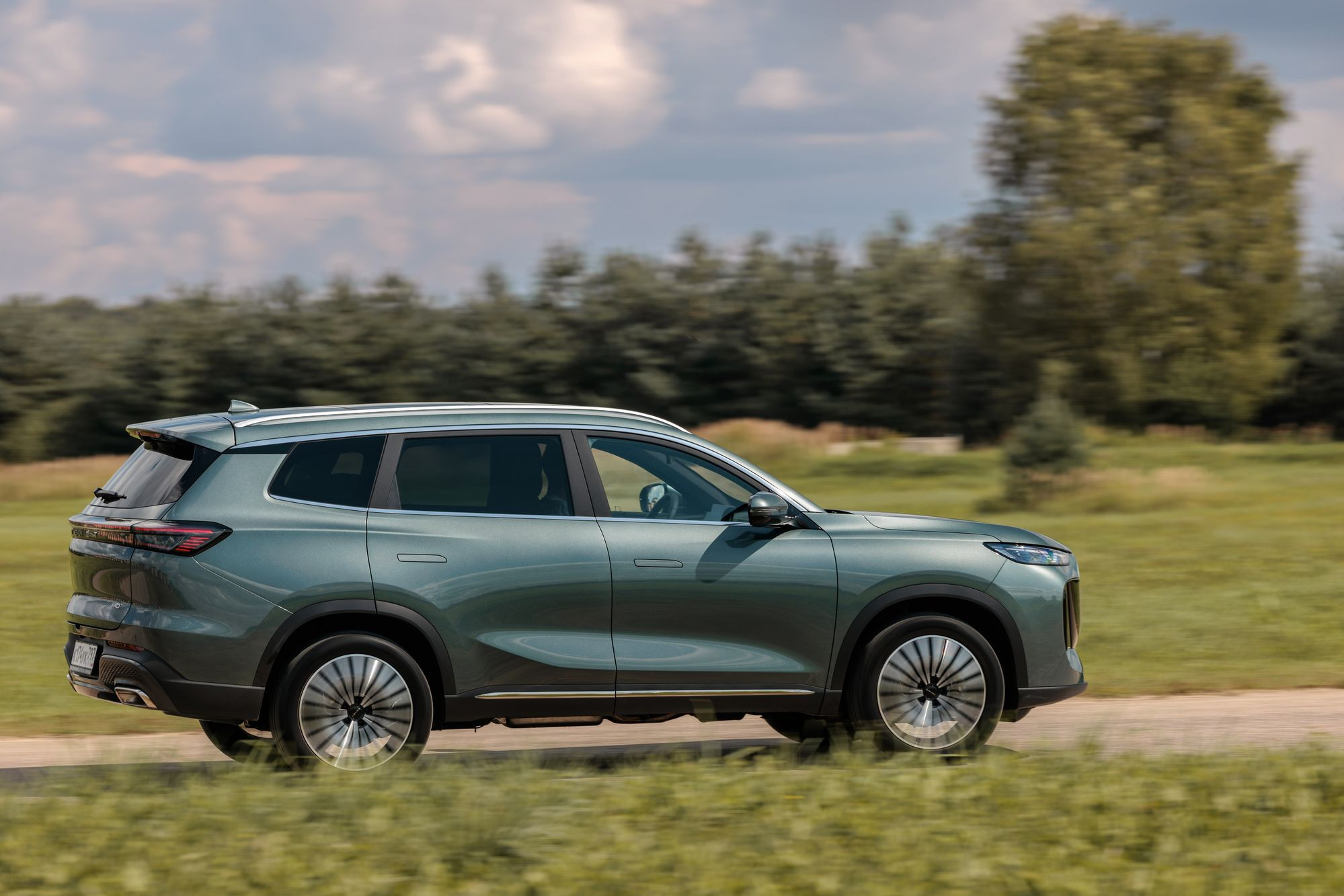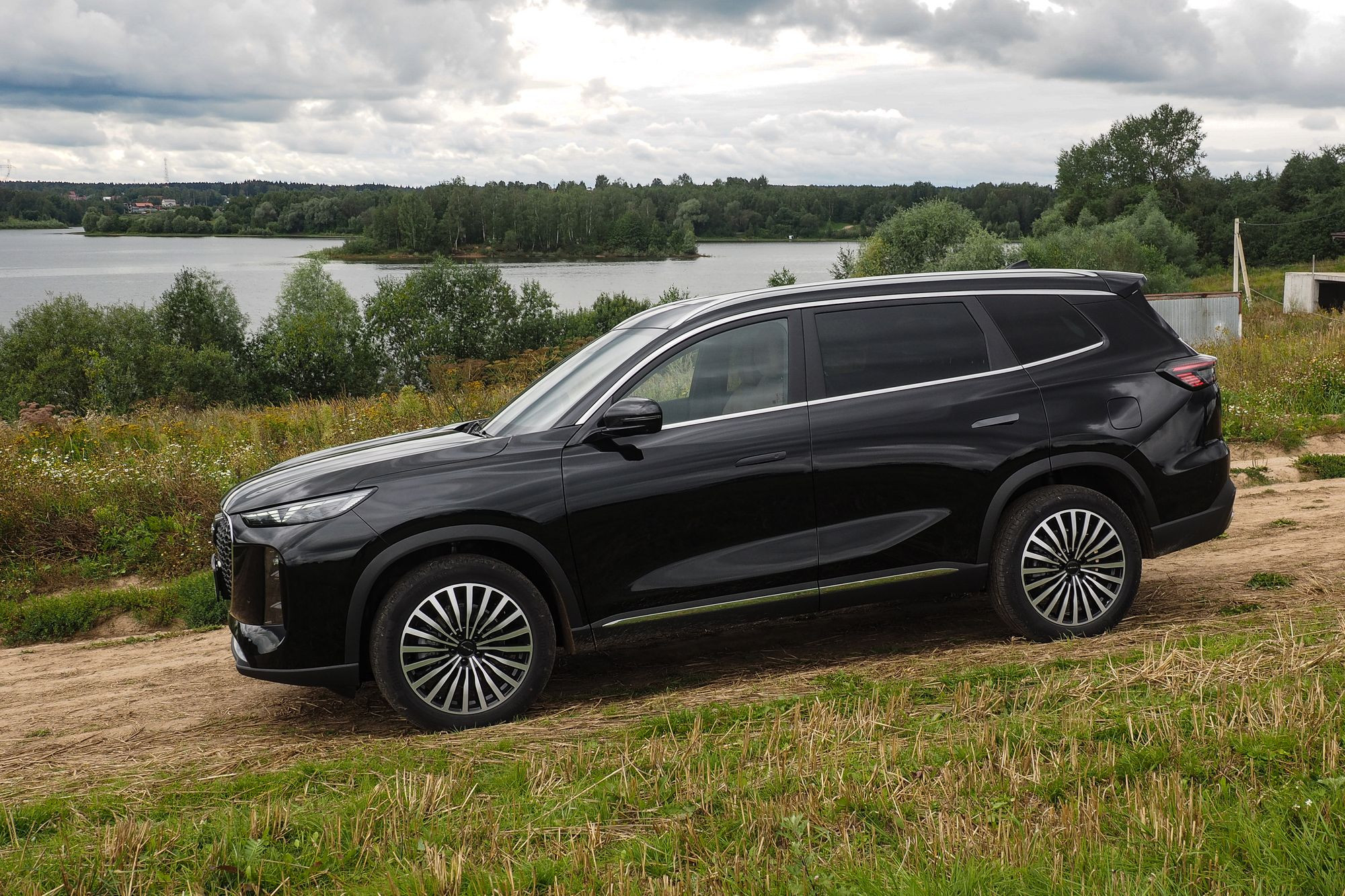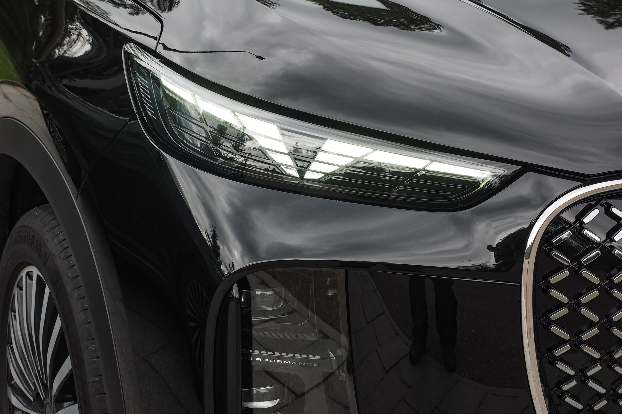 Различается и оформление передней части, где Tenet Т8 и Tiggo 8 Pro Max роднит разве что общая массивность облицовок радиатора. Но формы у них все же разные: у Chery решетка имеет очертания многоугольника, заполненного градиентным рисунком «бриллиантовых» элементов, а у Tenet это трапеция со скругленными краями, заполненная «сеточкой» из небольших хромированных элементов в виде прямоугольников. Но главное – это светотехника. В случае Tenet T8 архитектура ее размещения, скорее, напоминает таковую у Jaecoo J7 с его горизонтальными дневными ходовыми огнями в верхней части и «двухэтажным» размещением фар ближнего и дальнего света со светодиодными источниками. Сам же рисунок дневных ходовых огней можно назвать уникальным. Он напоминает и букву Т, и силуэт летящей чайки, а в компании называют его «кошачьи глазки». Эти же светодиоды выполняют и роль поворотников. Единственное, что меня смутило, это отсутствие противотуманных фар и места для их установки. Все-таки ситуации, когда противотуманки оказываются исключительно полезны, возникают на наших дорогах не так уж редко.