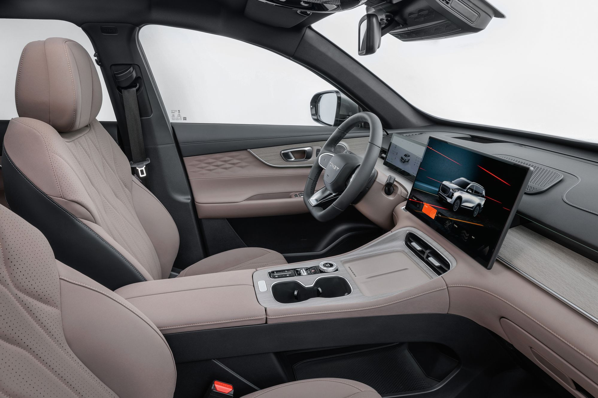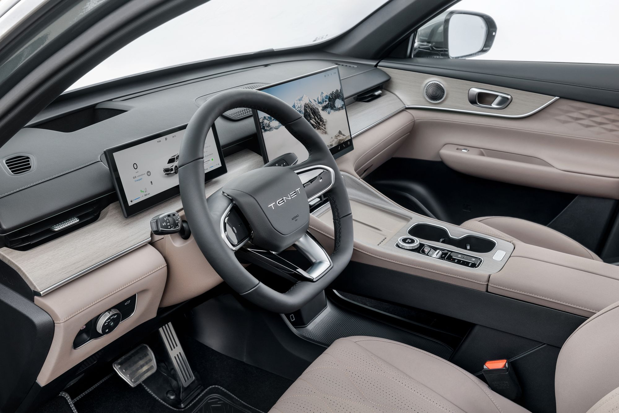 Для Tenet T8 предусмотрено только два цветовых решения интерьера: темно-серый вариант для младшей комплектации Prime и серо-бежевый для топовой комплектации Ultra. Различия между комплектациями не так уж велики: проекционный дисплей, вентиляция передних сидений и быстрая беспроводная зарядка телефона есть только в последней. Ну и колесные диски различаются: комплектация Prime оснащена колесами R18, а Ultra – R19.
