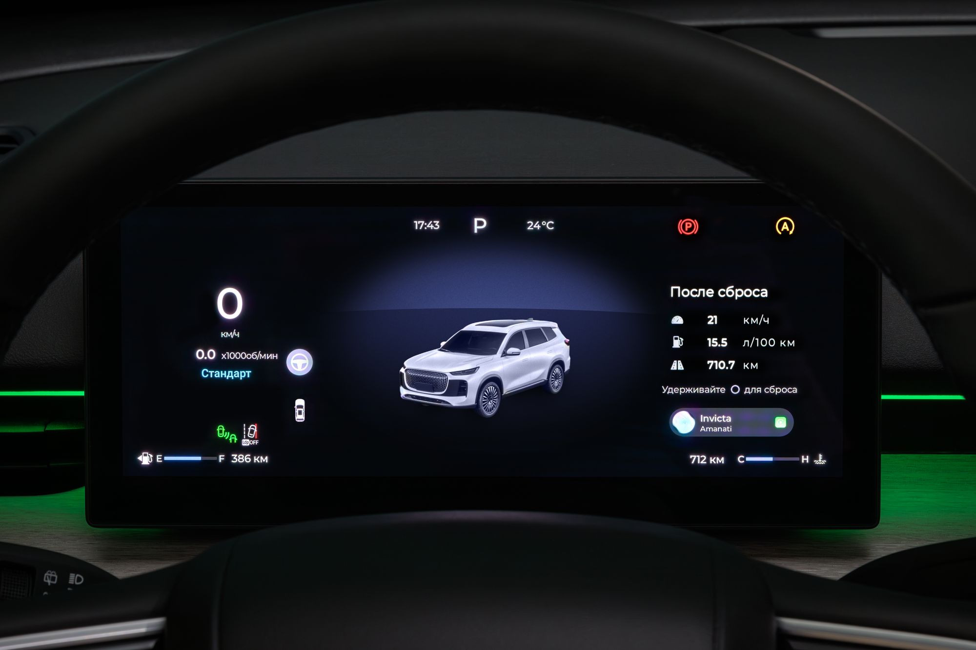 Шрифт экрана приборной панели, на мой взгляд, до неприличия мелок. Настолько, что я не мог разглядеть его без очков. Никакой возможности изменить способ вывода информации нет – меню позволяет только поменять светло-серый фон на черный. Многие предпочитают видеть перед собой пусть нарисованные, но привычные циферблаты со стрелками, а здесь – только цифры, причем обороты – мелким, не слишком хорошо читаемым шрифтом. Может быть, планируемый запуск R&D-центра Tenet что-то изменит в этой ситуации?