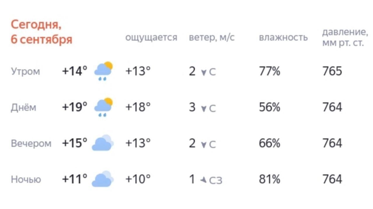 В Сургуте осадки прогнозируют лишь утром, к обеду уже немного распогодится. В утренние часы будет до +14 градусов, днем потеплеет до +17 градусов. К вечеру синоптики обещают похолодание до +13 градусов, ночью — до +10 градусов. Ветер — северо-западный с переходом в северный, 1-2 м/с.