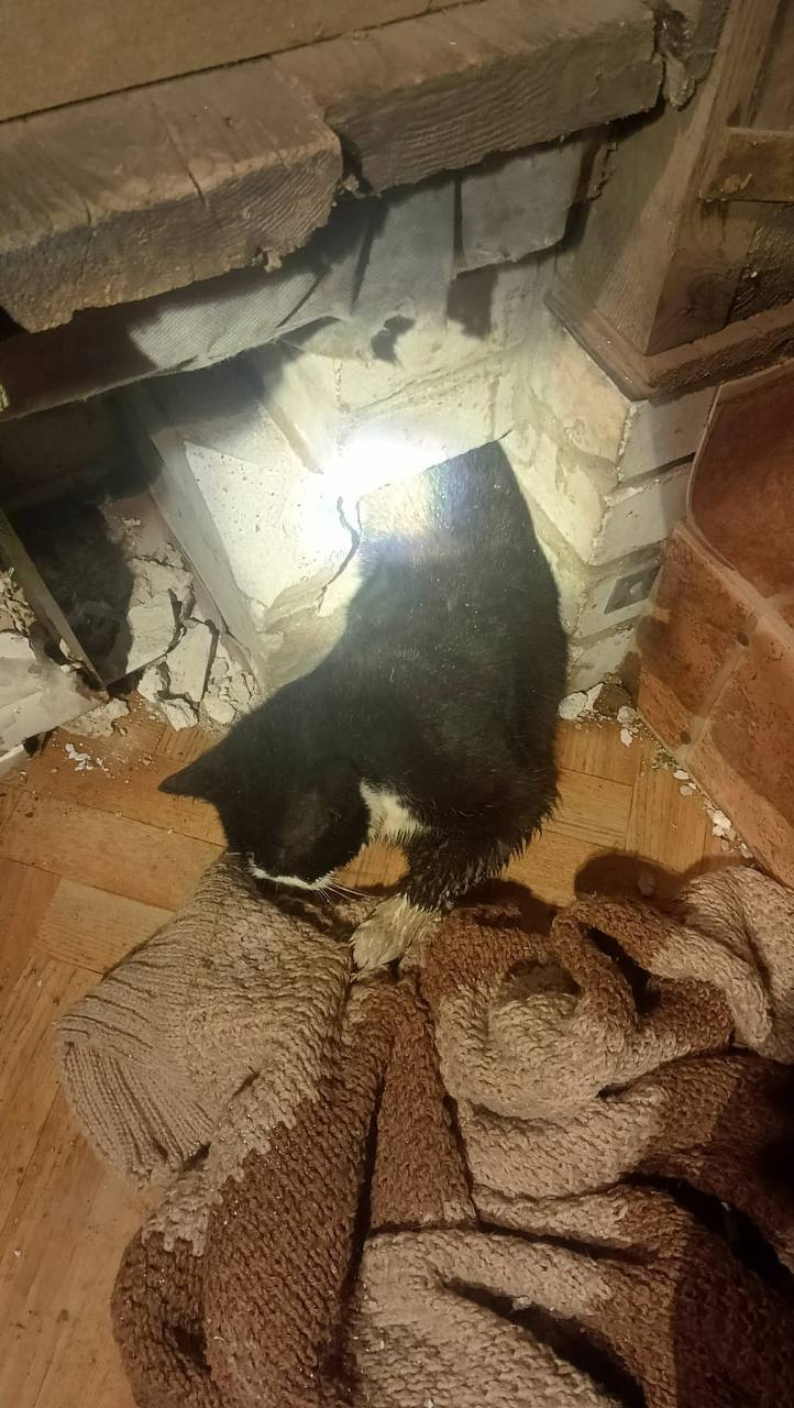 Пожарные выковыривали кота из кирпичной кладки в Суоранде