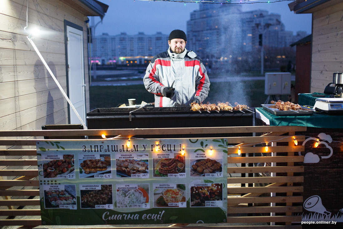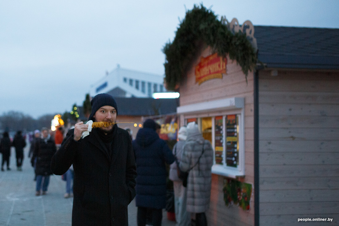 Не забудьте про шапку — нормального снега белорусы пока не дождались, но легкий морозец присутствует. Дегустировать изыски местной кухни придется прямо на улице, но от этого, кажется, только вкуснее. Вот вам снимки тех, кто уже дождался своих заказов.