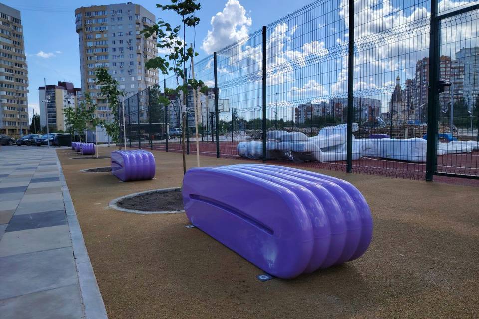 Перголы с теневым навесом, где можно подзарядить сотовый телефон, разноцветные светящиеся ночью лавочки, памп-трек для экстремалов – скоро парк Героев-летчиков будет одной из самых классных и притягательных точек на карте города!