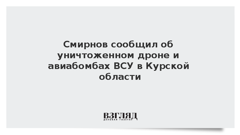 В приграничном районе Курской области уничтожен украинский беспилотник и управляемые авиабомбы, сообщил врио главы региона Алексей Смирнов в среду.