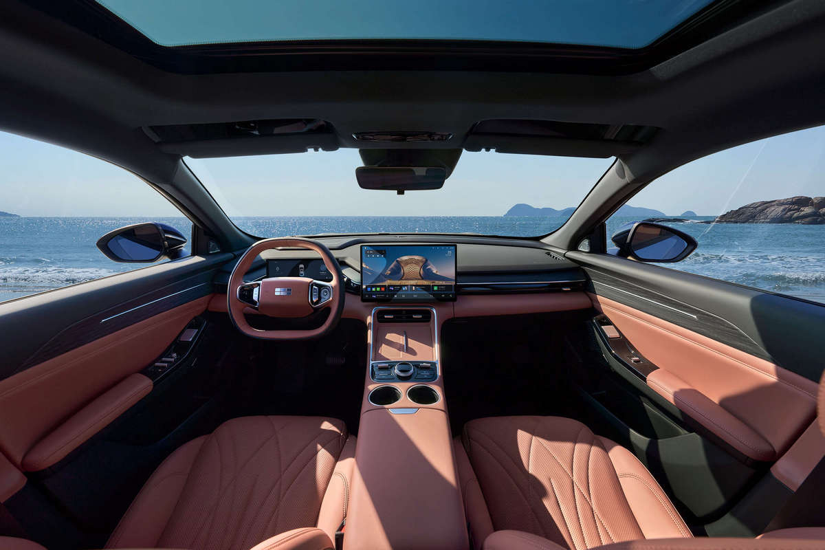 А вот салон перекроили. Тут новые руль, тоннель, экраны приборки и мультимедийной системы. При этом по центру теперь красуется привычный планшет, а не вертикальный. Мультимедиа – с операционной системой Flyme Auto. В списке оборудования богатых комплектаций также заявлены: подогрев передних сидений (водительское – еще с вентиляцией и массажером), штатный видеорегистратор, камеры кругового обзора, адаптивный круиз-контроль, системы автоторможения, удержания в полосе движения и распознавания дорожных знаков.