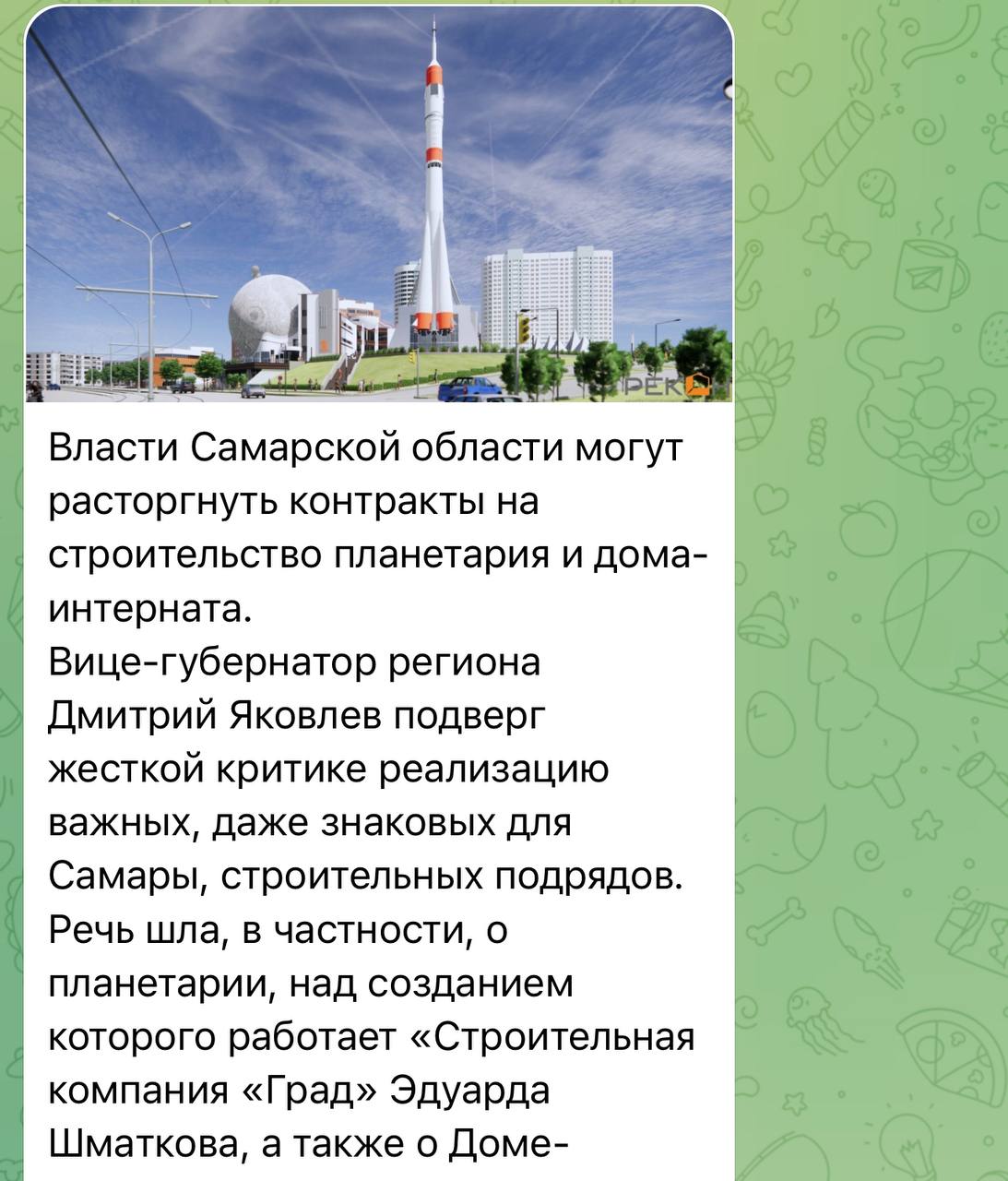 "Бандитская Самара" сообщает, что в Самаре может сорваться сдача планетария.
