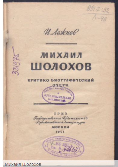 Основные вехи биографии и творческой судьбы писателя можно узнать из биографического очерка «Михаил Шолохов» (1941). В книге раскрывается история создания романа-эпопеи «Тихий Дон», ставшего одним из крупнейших литературных событий ХХ века. «Величавая и поэтическая, как река Дон, омывающая казачьи земли, книга многоцветная и ароматная, как сама донская степь», – так пишет о произведении автор очерка. За «Тихий Дон» Михаил Шолохов в 1965 году получил Нобелевскую премию.