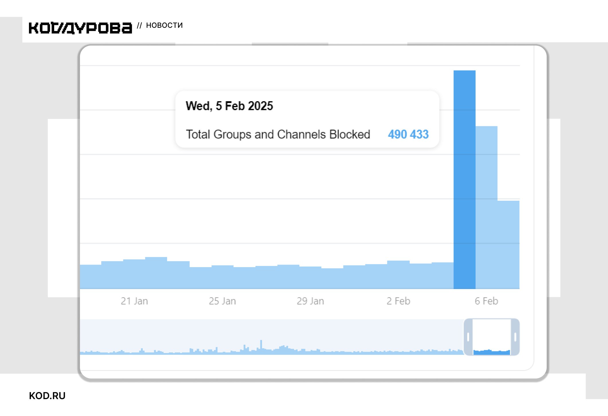 ΠΠ° ΠΏΠΎΡΠ»Π΅Π΄Π½ΠΈΠ΅ Π½Π΅ΡΠΊΠΎΠ»ΡΠΊΠΎ Π΄Π½Π΅ΠΉ Telegram ΡΠ΄Π°Π»ΠΈΠ» ΡΠ΅ΠΊΠΎΡΠ΄Π½ΠΎΠ΅ ΠΊΠΎΠ»ΠΈΡΠ΅ΡΡΠ²ΠΎ ΠΊΠ°Π½Π°Π»ΠΎΠ² ΠΈ Π³ΡΡΠΏΠΏ. ΠΡΠ΅Π³ΠΎ Π·Π° ΡΡΠΎΠ΅ ΡΡΡΠΎΠΊ ΡΡΠΌΠΌΠ°ΡΠ½ΠΎΠ΅ ΠΊΠΎΠ»ΠΈΡΠ΅ΡΡΠ²ΠΎ Π·Π°Π±Π»ΠΎΠΊΠΈΡΠΎΠ²Π°Π½Π½ΡΡ ΡΠΎΠΎΠ±ΡΠ΅ΡΡΠ² ΡΠΎΡΡΠ°Π²ΠΈΠ»ΠΎ Π±ΠΎΠ»Π΅Π΅ 1 ΠΌΠ»Π½ Π΅Π΄ΠΈΠ½ΠΈΡ.