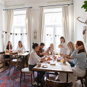 Дом Наркомфина — экспериментальное «жилье переходного типа» и яркий пример архитектуры советского авангарда, который несколько лет назад пережил реконструкцию. На экскурсии по коммунальному блоку дома от команды Музея «Гараж» можно оценить оригинальную задумку архитектора Моисея Гинзбурга и узнать, как жили работники Народного комиссариата финансов. После этого всех участников приглашают заглянуть в кафе (обычно оно открыто только для жильцов дома, патронов и участников программы лояльности музея). В меню — закуски, салаты и горячие блюда из сезонных продуктов, а еще авторские десерты: шеф-кондитер Лена Набиуллина разработала безглютеновое пирожное «Темный шоколад», лимонное и ванильное пирожные, чизкейк и кето-эскимо специально для Дома Наркомфина.