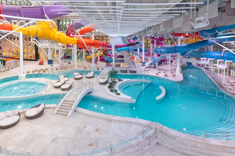 В аквакомплексе «Лужники» работают девять горок общей протяженностью 1300 метров. Здесь можно провести целый день: спуститься с «Циклона», «Вихря», «Торнадо» и других водных аттракционов, а после — расслабиться в термобассейне, частично расположенном на открытом воздухе. Он прогревается до 36 градусов, поэтому наслаждаться панорамным видом на Воробьевы горы можно даже зимой. Еще в «Лужниках» есть несколько бассейнов с подсветкой, пневмо- и гидромассажем, противотоками, водопадами и гейзерами.