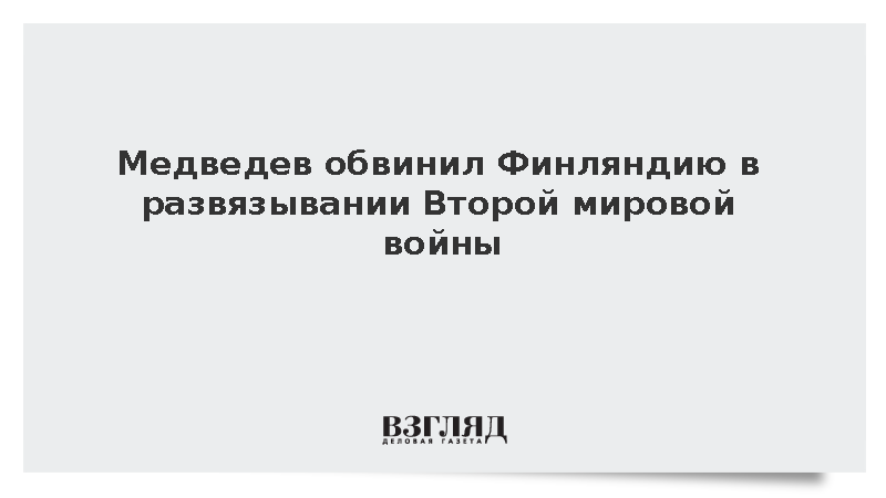 Медведев заявил, что Финляндия как государство-сателлит Третьего рейха несет ответственность за развязывание Второй мировой войны наряду с Германией, передает ТАСС.