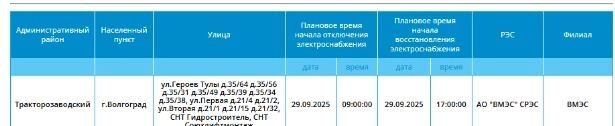 В Тракторозаводском районе света лишились улицы Героев Тулы, Первая. В Ворошиловском районе электричества нет по улицам Молодежная, Центральная, Приовражная, переулок Тупиковый.