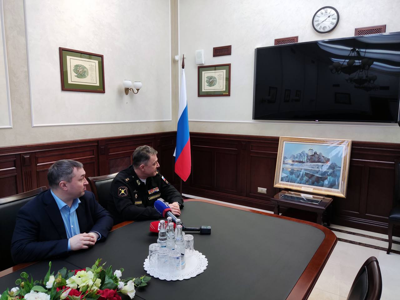 Встретились с вице-адмиралом, заместителем начальника Главного организационно-мобилизационного управления Генштаба ВС РФ Владимиром Цимлянским.