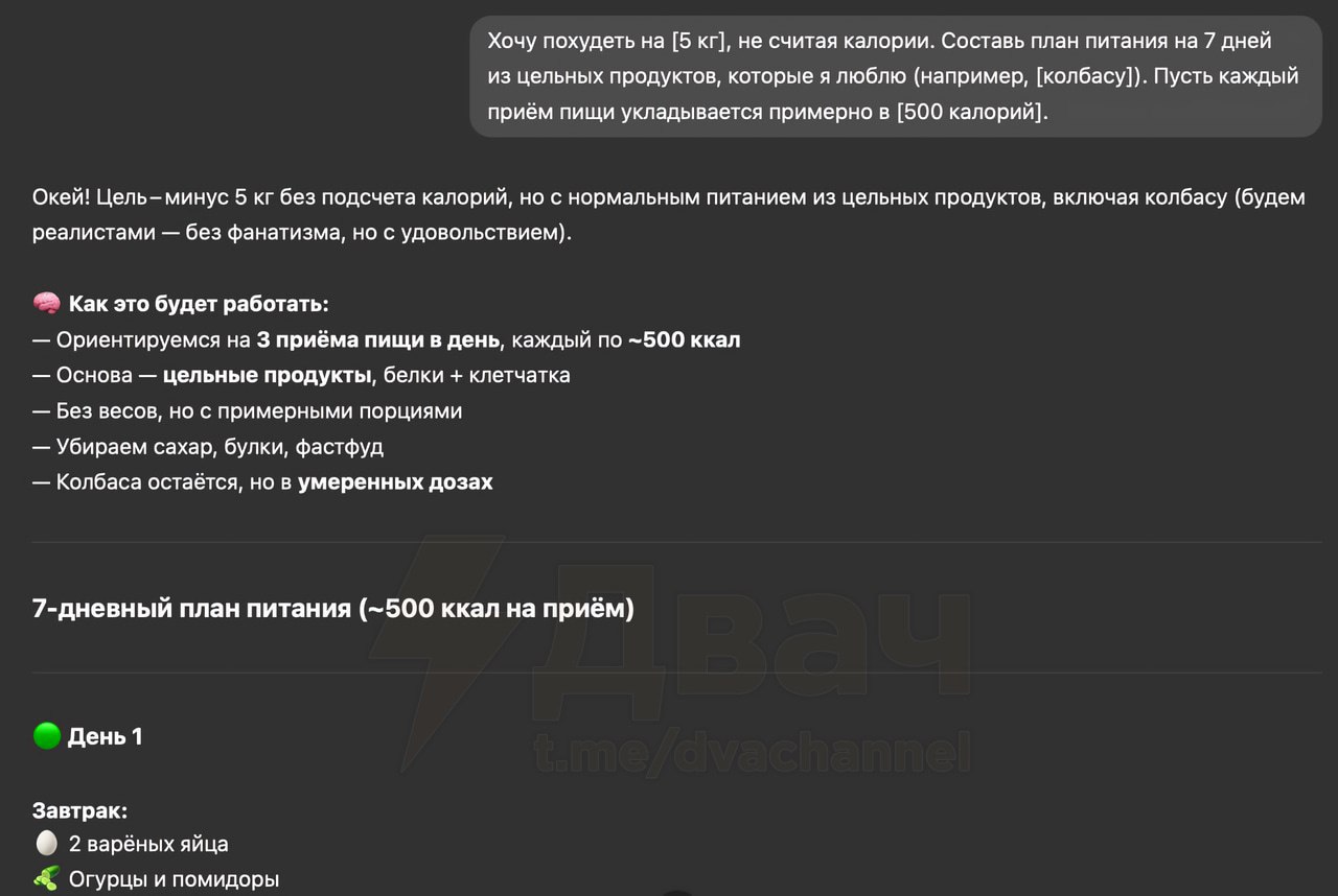 Делаем из ChatGPT личного помощника по питанию и худеем без спортзала: в Сети нашли 7 промптов, которые реально помогут убрать лишний вес.