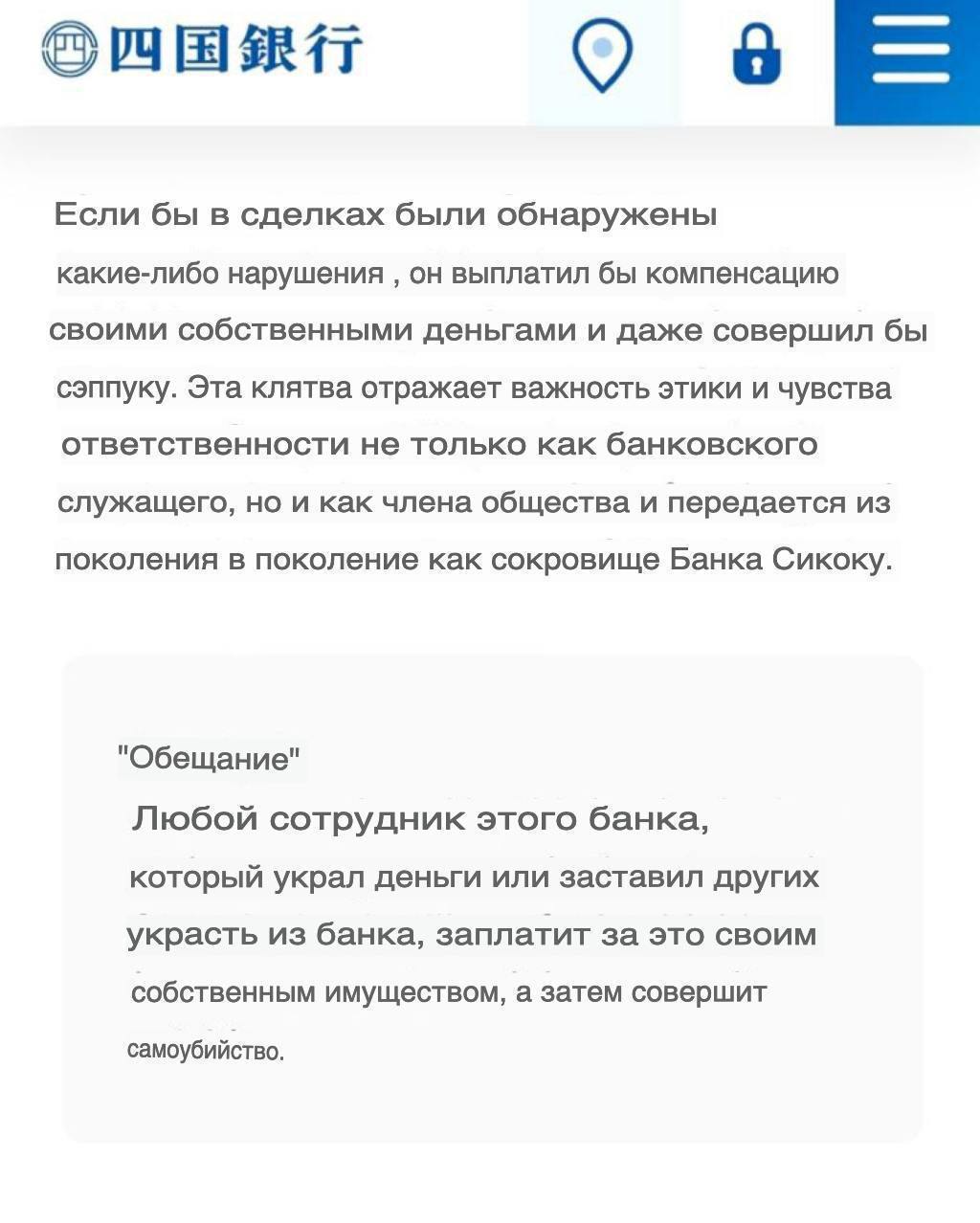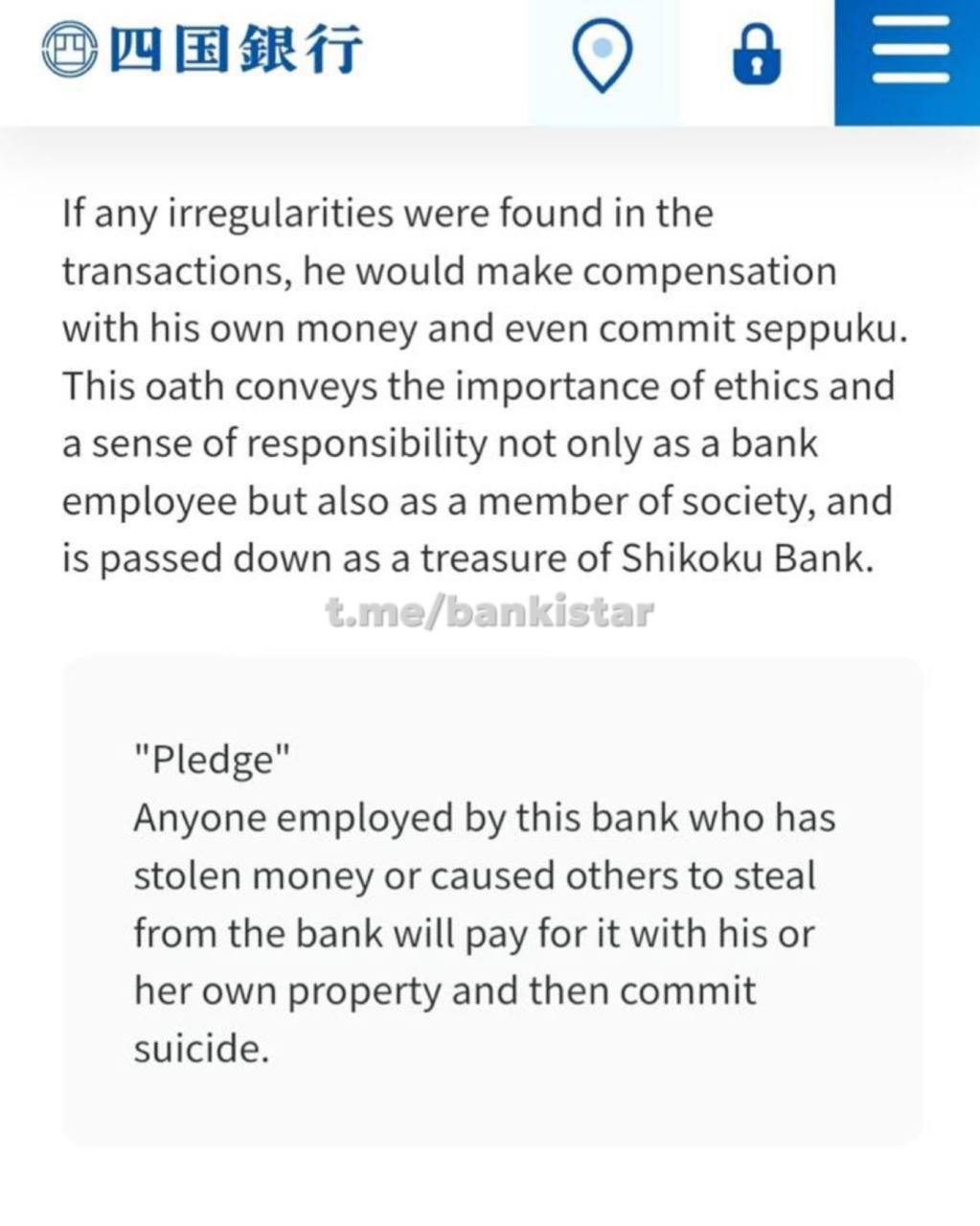 π¦ Π‘ΠΎΡΡΡΠ΄Π½ΠΈΠΊΠΈ ΡΠΏΠΎΠ½ΡΠΊΠΎΠ³ΠΎ Π±Π°Π½ΠΊΠ° Shikoku ΠΎΠ±ΡΠ·ΡΡΡΡΡ ΠΏΠΎΠΊΠΎΠ½ΡΠΈΡΡ Ρ ΡΠΎΠ±ΠΎΠΉ, Π΅ΡΠ»ΠΈ ΠΎΠ½ΠΈ ΡΠΊΡΠ°Π΄ΡΡ Π΄Π΅Π½ΡΠ³ΠΈ ΠΊΠ»ΠΈΠ΅Π½ΡΠ° ΠΈΠ»ΠΈ ΠΏΠΎΡΠΏΠΎΡΠΎΠ±ΡΡΠ²ΡΡΡ ΠΊΡΠ°ΠΆΠ΅, β Hindustan Times