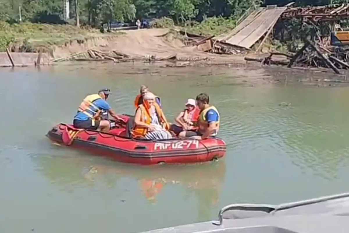 Переправа работает в поселке с 17 августа – жителей доставляют на лодке спасатели.