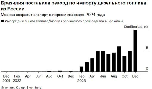 Бразилия готовится к рекордному импорту российского дизеля в декабре. Всплеск поставок предшествует обещанию России увеличить сокращение экспорта нефти в 2024 году. Рекордный объемы российских поставок дизеля в Бразилию стал ударом по нефтепереработчикам США.