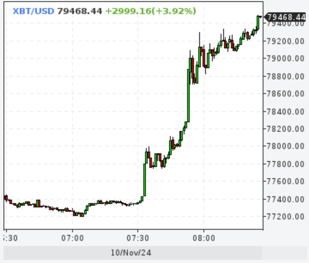 Биткоин обновил максимум, превысив $79,000. Ethereum выше $3200.