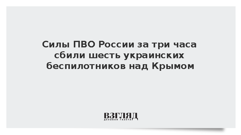 С 9.00 до 12.00 по московскому времени дежурные средства противовоздушной обороны уничтожили шесть украинских беспилотников самолетного типа над территорией Крыма, сообщает Минобороны России. В ведомстве уточнили, что атака была отражена в течение трех часов.