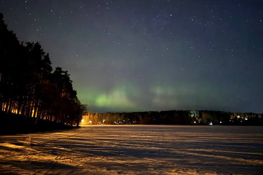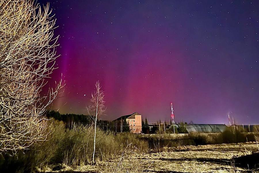 Северное сияние заметили в Подмосковье и других регионах прошлой ночью.