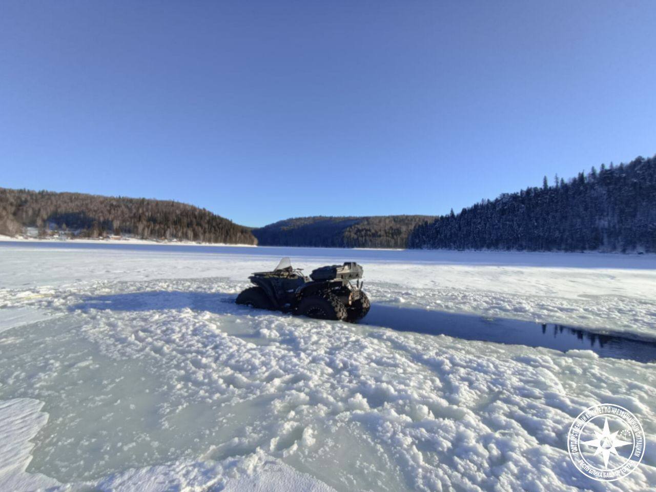 ❄️Сегодня в Караидельском районе, недалеко от деревни Байряшка, произошел инцидент, который мог закончиться плачевно. Четыре человека — трое мужчин и подросток — выехали на лед Павловского водохранилища на снегоходе и квадроцикле.