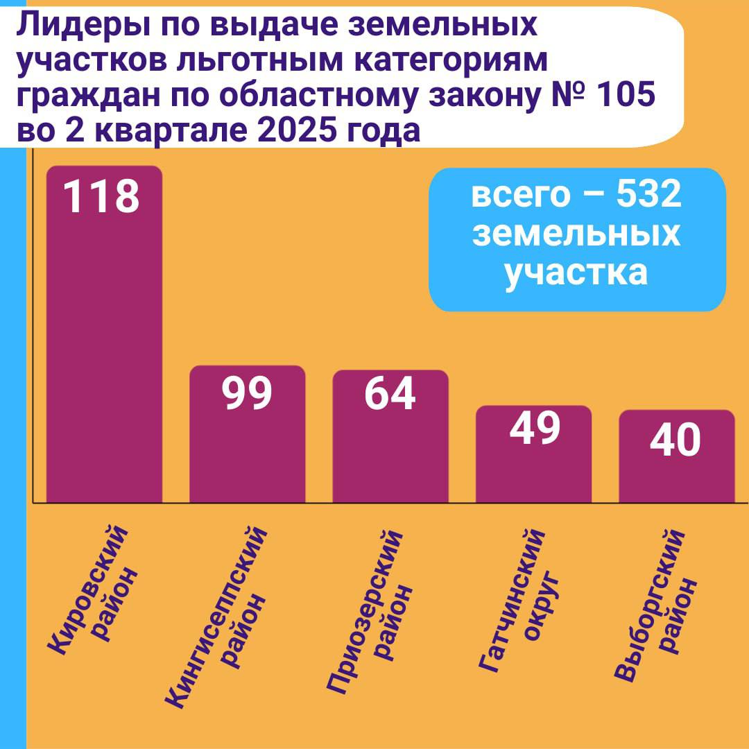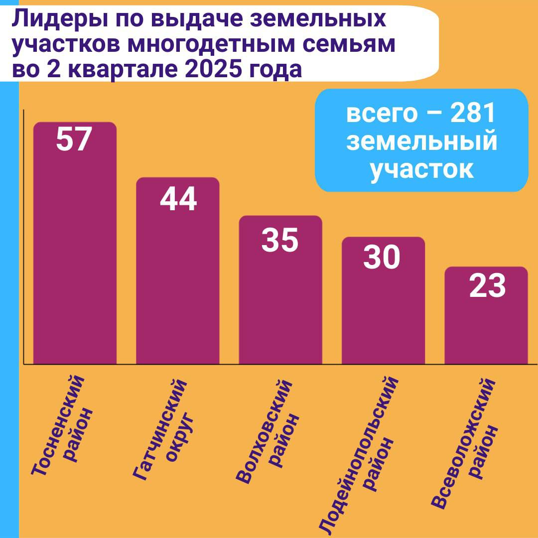 ❗️ В Ленобласти многодетным семьям за второй квартал 2025 года выдали 281 земельный участок