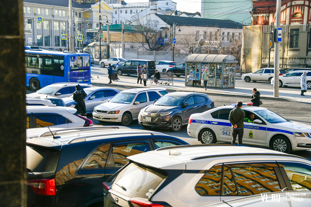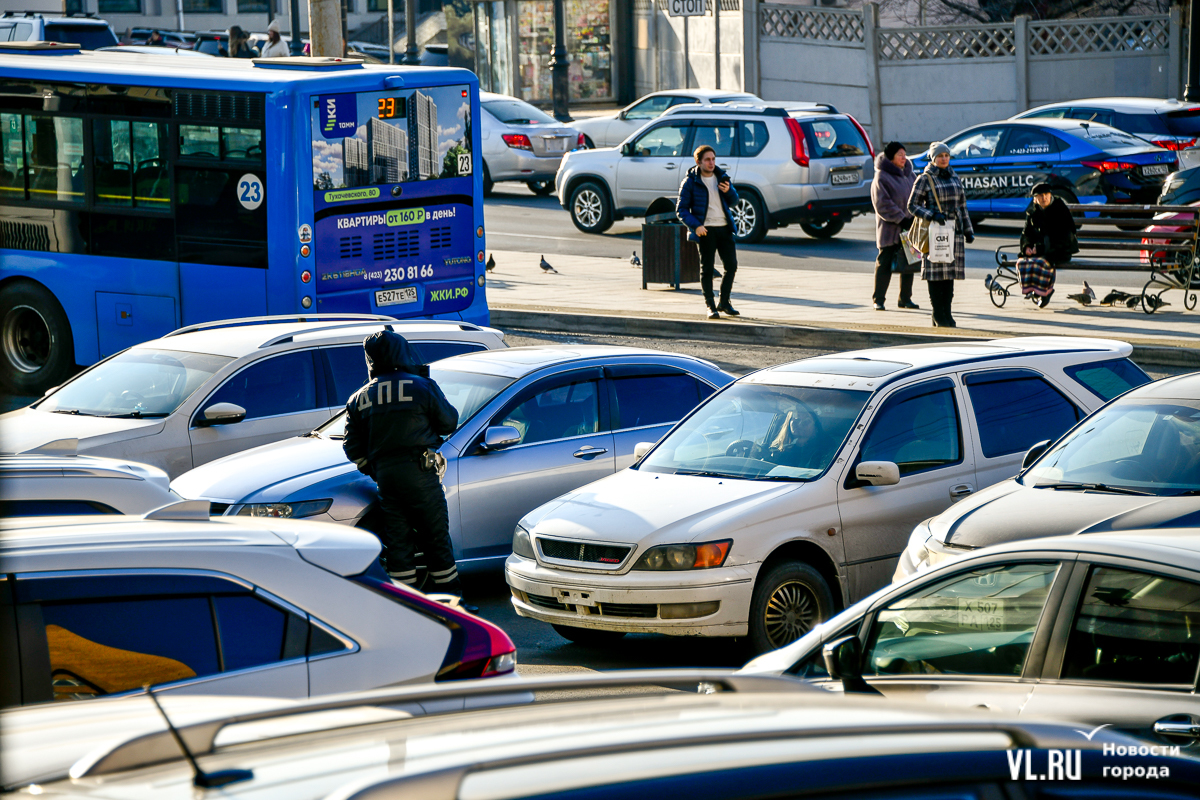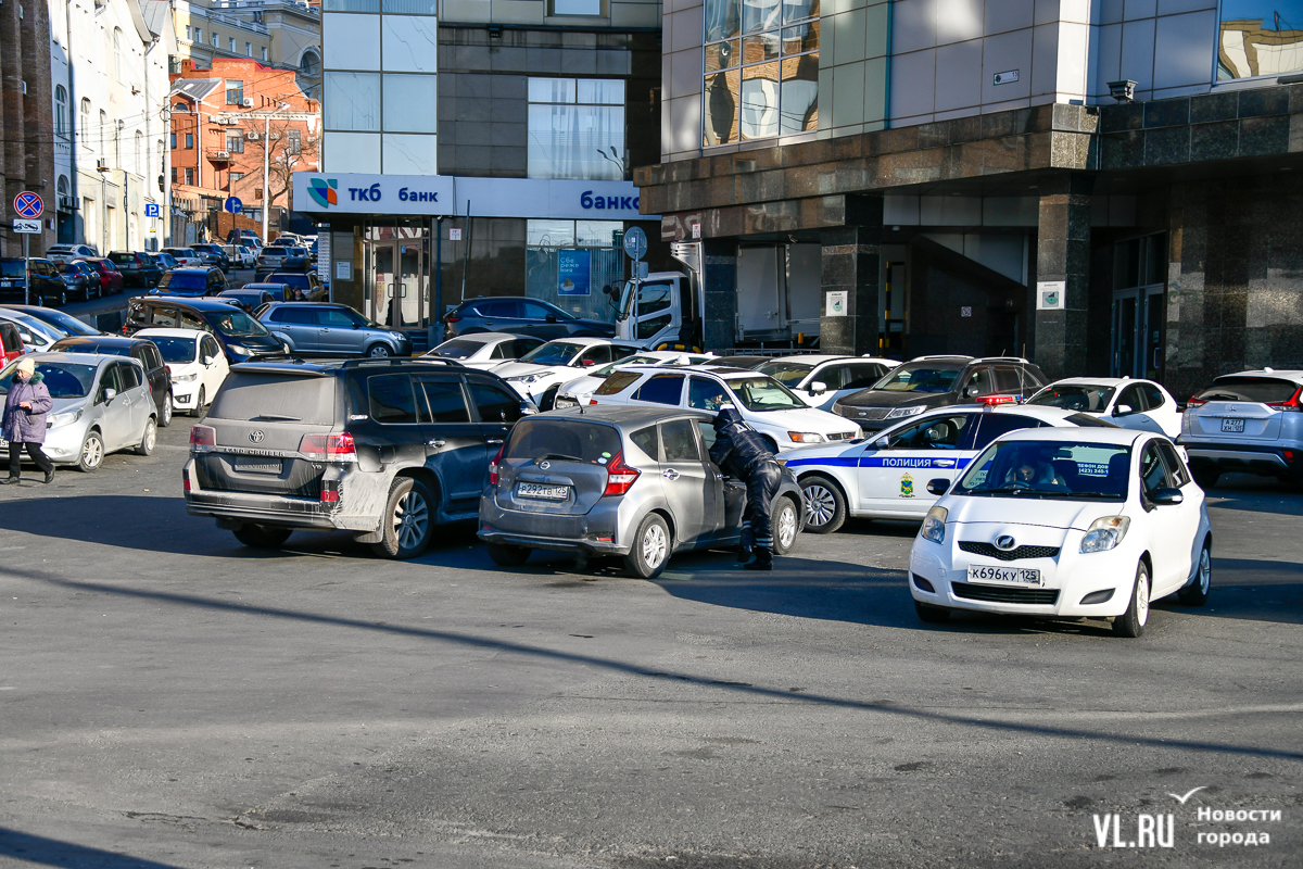 Во вторник, 10 декабря, не было и такого эффекта. Корреспондент Новостей VL.ru стал свидетелем того, как на площадь приехал один наряд, который выписал несколько штрафов, но практически не препятствовал новым машинам парковаться. Иногда это выглядело так: водитель уходил из машины, после чего сотрудники подходили к автомобилю и начинали бить по колесу, чтобы вызвать хозяина авто. Тот возвращался далеко не сразу, когда сотрудники уже сидели в патрульном автомобиле и просто говорили в громкоговоритель, чтобы водитель уезжал.