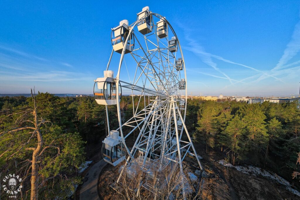 В 1970-е годы парк предлагал посетителям несколько популярных мест для отдыха и развлечений. Среди них были драматический театр, зона аттракционов с очень востребованным в то время тиром, танцплощадка, шахматный павильон и так называемое "чертово колесо". Причина, по которой колесо обозрения получило такое прозвище, доподлинно не установлена; возможно, это связано с популярностью одноименной песни Муслима Магомаева в те годы. Это колесо действительно отличалось от современного, установленного на том же месте, прежде всего по степени безопасности. Сегодняшнее колесо имеет 14 закрытых кабин, оборудованных кондиционерами и обогревателями. Ранее кабинок не было: это была вращающаяся центрифуга с очень низкими бортиками, похожая на те, что до сих пор встречаются на детских площадках. Пассажиров фиксировали металлическими цепочками. Некоторые молодые люди во время движения колеса отстегивались, демонстрируя храбрость перед друзьями или девушками. Были и те, кто поднимался на аттракцион в нетрезвом виде. Несчастные случаи происходили регулярно. Тем не менее, возможность увидеть центр города с высоты привлекала многих, и поэтому колесо обозрения долгое время считалось одним из главных развлечений в парке.