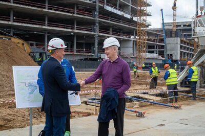 Собянин и Греф осмотрели ход строительства школы Сбера в Рублево-Архангельском