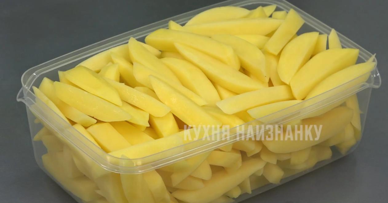 Бывает, что нужно уехать, а везти с собой остатки картофеля не совсем удобно. Ну не выбрасывать же :) Поэтому нарезаю на брусочки, хорошо промываю в воде, выкладываю на чистое полотенце, просушиваю, отправляю в пластиковый контейнер подходящего размера и замораживаю.