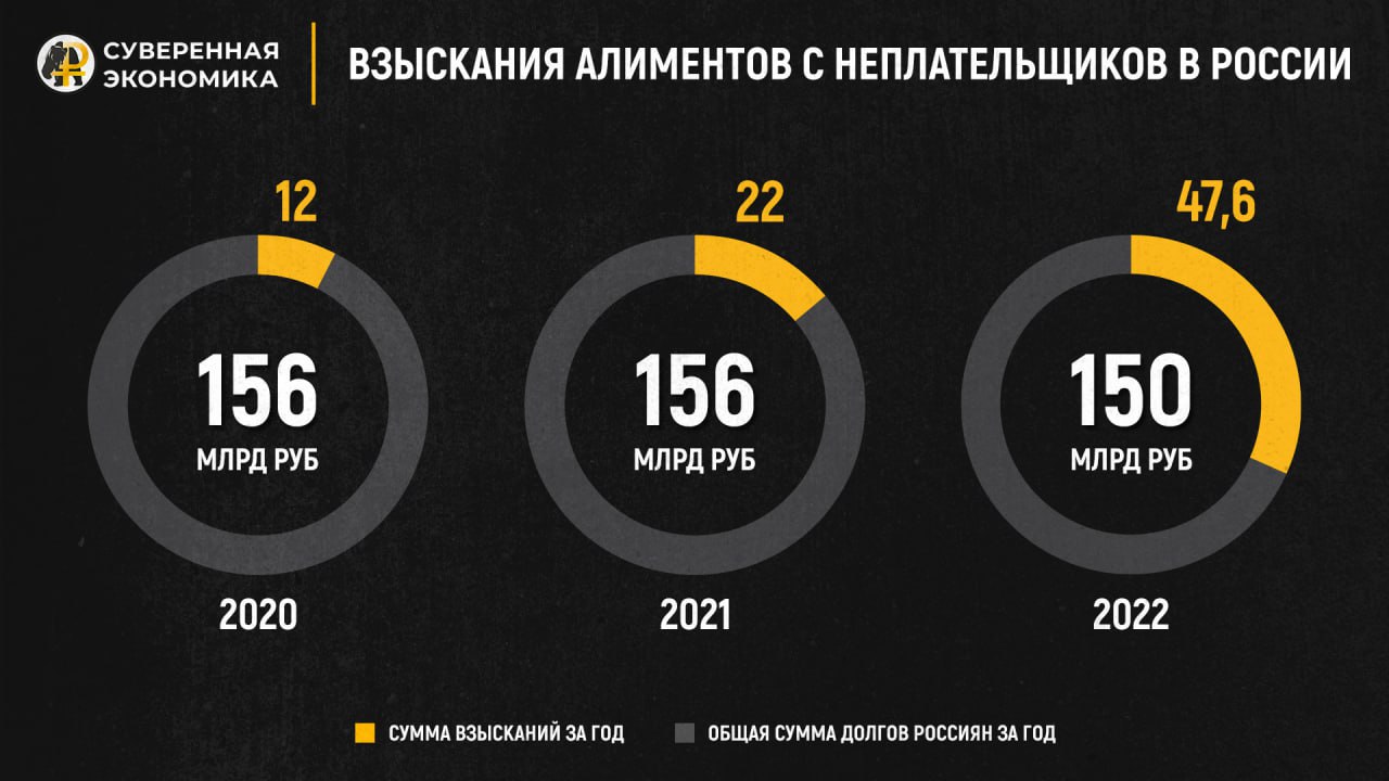 Грехи отцов — в России ужесточат контроль за выплатой алиментов Татьяна Москалькова предложила создать специальный государственный алиментный фонд для эффективного взыскания алиментов. За 2022 год приставы получили от неплательщиков ₽47,6 млрд. К слову, сумма неуплаченных россиянами алиментов растет от года к году. С 2014 по 2021 средний долг по алиментам увеличился на 58% — с ₽96 тыс до ₽152 тыс. Наказания за неуплату алиментов в России предусмотрены достаточно суровые — от исправительных работ до срока в тюрьме. При этом горе-отцы часто прибегают к «серым» схемам, чтобы избежать ответственности. Ни для кого не секрет, что, по статистике, алименты не платят именно представители сильного пола, так как ребенок часто проживает с матерью. Должники занижают свой реальный доход, чтобы уменьшить сумму выплаты. Многие получают зарплату в конверте, а потому они платят значительно меньше, чем положено. Учитывая всю креативность, реальная сумма задолженности россиян по алиментам может быть куда больше. Неуплата алиментов в полном размере — это реальная проблема, которую надо решать здесь и сейчас, совершенствуя способы взыскания и выявления такого рода нарушений. Дети в нашей стране должны быть обеспечены вне зависимости от того, какие отношения между их родителями. Подписаться на «Суверенную экономику»