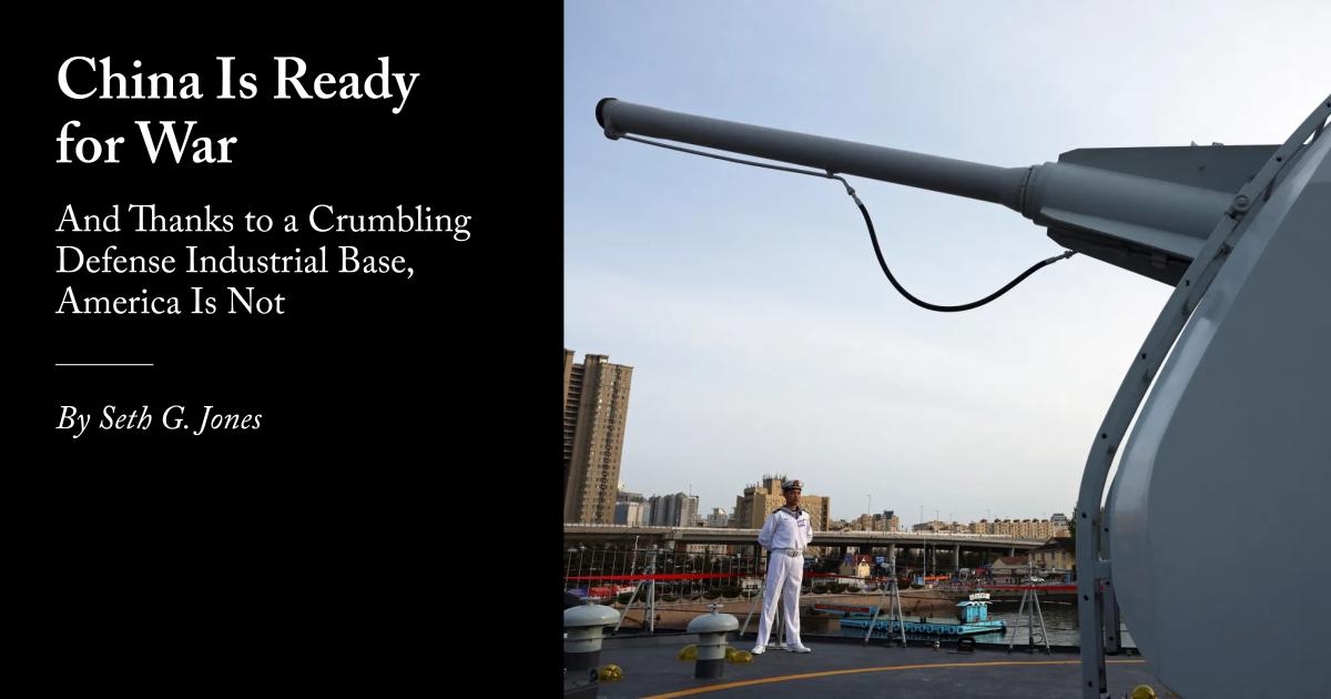 "Судостроительные мощности КНР примерно в 230 раз превышают мощности США. С 2021 по начало 2024 года Китай произвёл более 400 современных истребителей и 20 крупных военных кораблей, удвоил запасы ядерных боеголовок и более чем удвоил запасы баллистических и крылатых ракет, а также разработал новый бомбардировщик-невидимку, увеличил количество запусков спутников на 50%. Китай приобретает системы вооружений в 5-6 раз быстрее, чем США".
