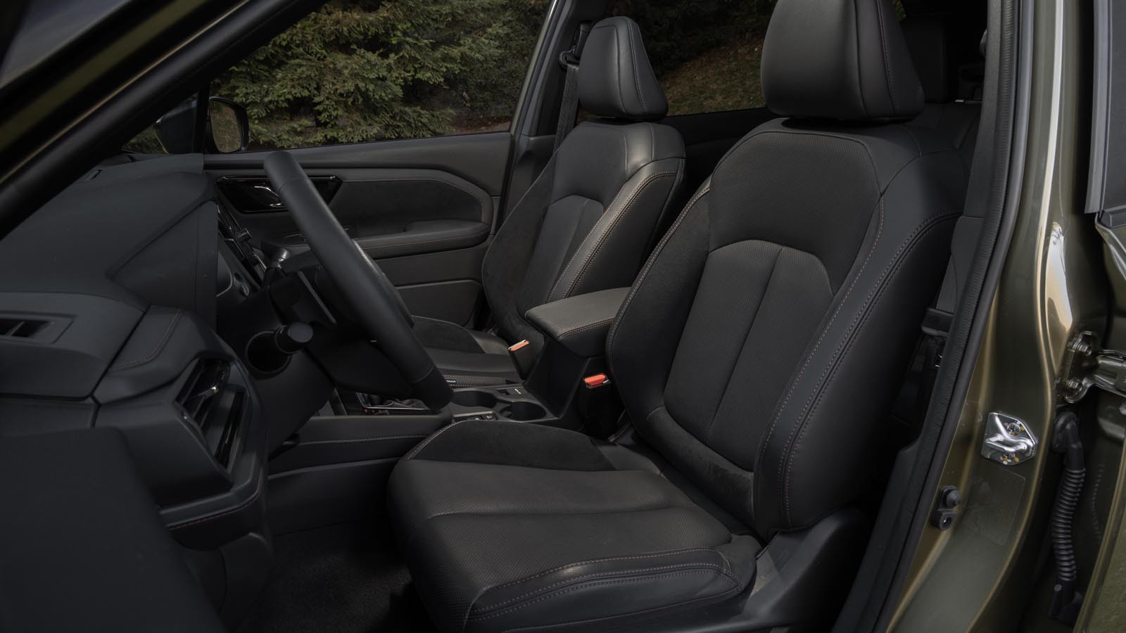 Визуальных отличий немного: есть несколько шильдиков, эксклюзивный для новой версии кроссовера цвет кузова – Daybreak Blue Pearl, а также можно выбрать чёрную крышу Crystal Black. В салоне на передней панели размещены виртуальная приборка диагональю 12,3 дюйма и планшет информационно-развлекательной системы на 11,6 дюйма. В стандартное оснащение входит фирменный комплекс водительских помощников EyeSight, а также система экстренной остановки в случае, если водитель перестает реагировать на предупреждения (она останавливает автомобиль, включает «аварийку» и отправляет запрос в службу экстренной помощи).