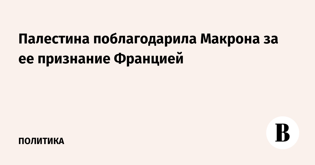 Палестинские власти благодарны президенту Франции Эммануэлю Макрону за намерение Парижа признать Палестину суверенным государством. Об этом заявил вице-президент страны Хусейн аш-Шейх.