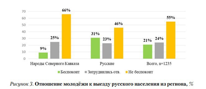 Ещё в этом исследовании приводятся данные отношения молодёжи СКФО (куда кроме северо-кавказских республик входит и Ставропольский край) к оттоку русского населения из региона.