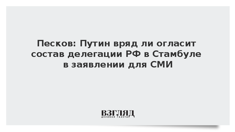 Ранее Песков сообщил, что Путин намерен 15 мая уделить день рабочим встречам. Помощник президента России Юрий Ушаков заявил, что в Стамбуле планируется обсуждение сразу нескольких направлений, включая политические и технические аспекты.