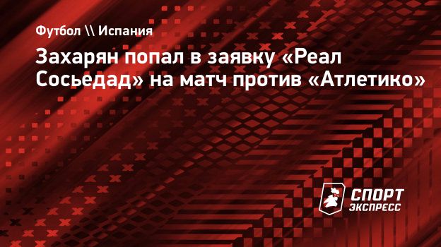 Российский полузащитник «Реал Сосьедад» Арсен Захарян включен в заявку на матч 18-го тура Ла Лиги против «Атлетико».