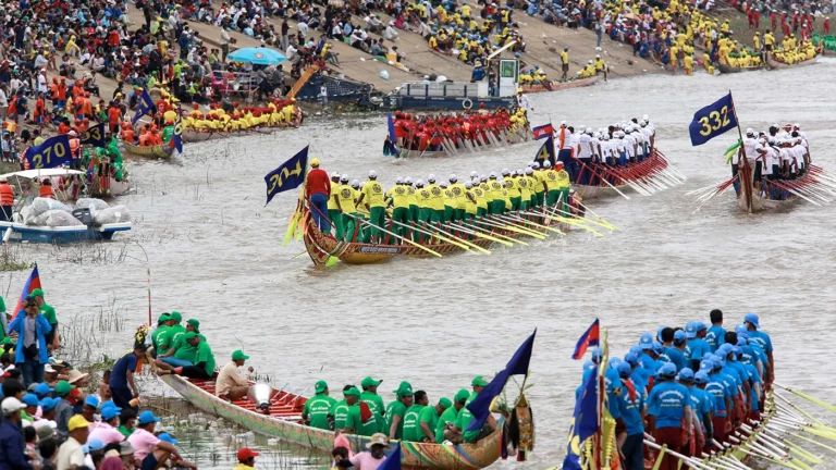 В Пномпене после трехлетнего перерыва из-за пандемии COVID-19 стартовал один из самых значительных и ярких фестивалей Камбоджи Bonn Om Touk. Мероприятие проходит в течение трех дней и его основным элементом является красочная регата. Участие в гонках принимают 337 лодок с 20 417 гребцами из разных провинций. Как прошло открытие Водного фестиваля — в фотогалерее RTVI.